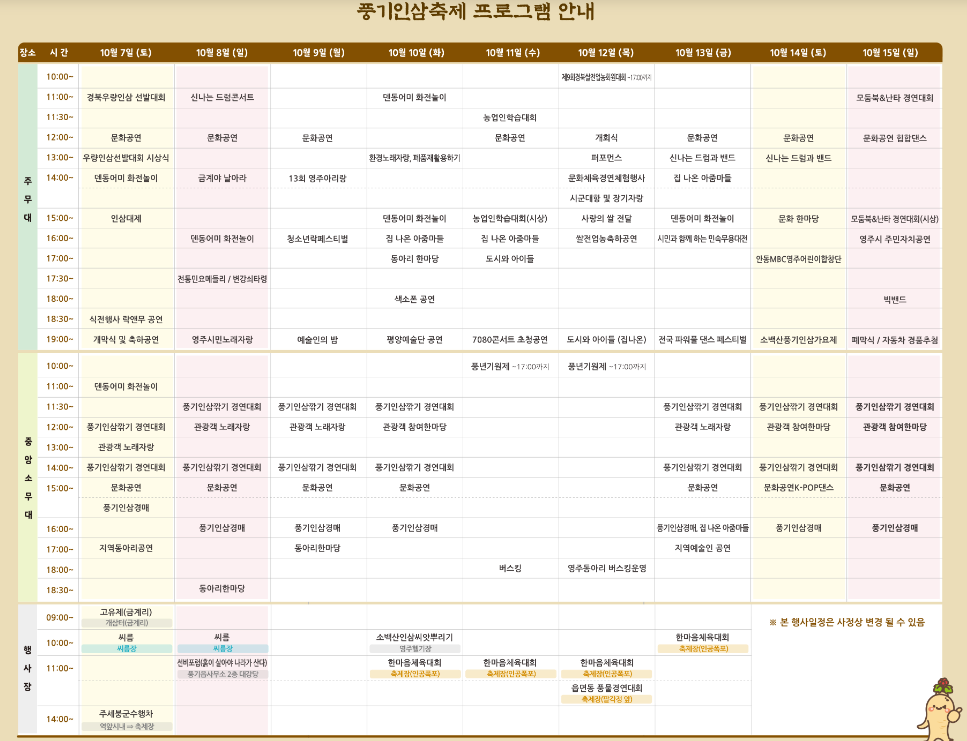 경북 영주 풍기 인삼축제 일정 및 주차장, 공연 안내
