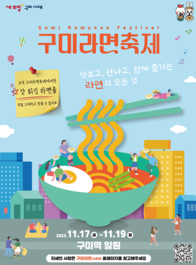 구미 라면축제는 맛보고,만나고, 함께 즐기는 라면의 모든 것을 볼 수 있는 구미라면축제가 다음주에 열립니다.