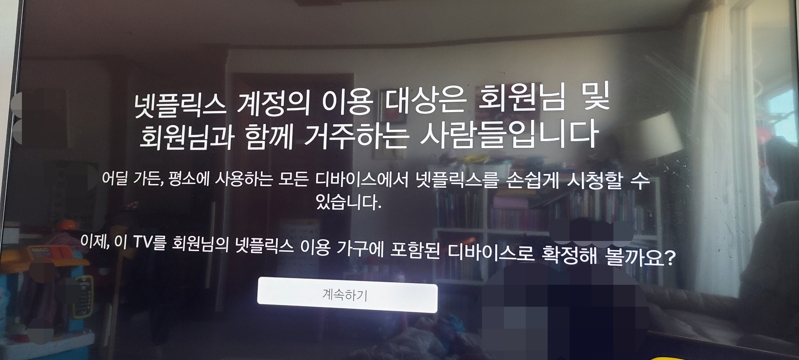 넷플릭스 계정공유를 금지할 것이라는 이야기가 많았습니다. 지난 주에 티비를 켜니 갑자기 공유금지를 안내하더군요. 이제 한국에서도 계정공유가 안되는 시기가 온 만큼 계정 공유 금지에 대