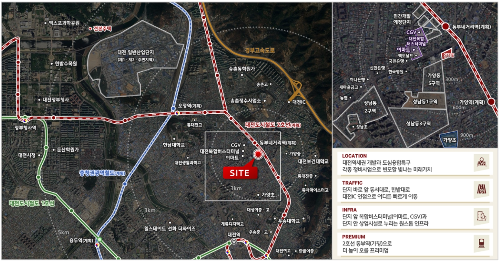 특히 향후 대전지하철 2호선이 주변에 생길 예정으로 더욱 많은 기대를 받는 입지조건입니다.