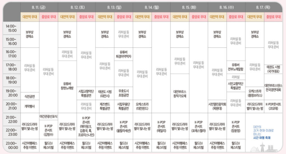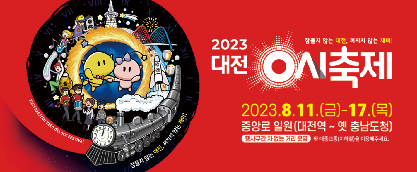 카테고리 없음 [지역축제정보]대전 0시축제가 곧 열립니다. by swebinnar 2023. 7. 27. 반응형 자세한 사항은 위의 사진을 눌러보세요. 대전 0시 축제는? 잠들지 않는 대전, 꺼지지 않는 재미라는 슬로건으로 열리는 대전 0시 축제가 대전을 노잼도시에서 유잼도 시로의 도약을 합니다. 대전의 과거, 현재 그리고 미래를 주제로 다양한 장소에서 밤새 이어질 행복한 축제에 여러분도 함께하시길 바랍니다. 행사일정 및 장소 2023년 8월 11일(금) ~ 8월 17일 (목) 옛. 충남도청에서 대전역 일원 주요 행사일정 자세한 행사일정은 위 사진을 눌러주세요. 반응형 공유하기 게시글 관리 스외빛나르