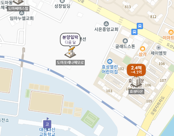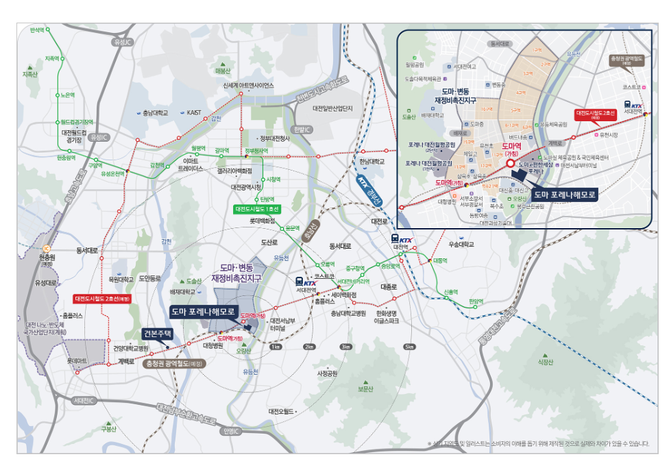 대전광역시 서구 도마동 181-1번지 일대가 공사지역으로 최근 분양한 도마e편한세상과 도로를 마주보고 위치해있으며, 대신고등학교와는 바로 붙어있는 위치입니다.