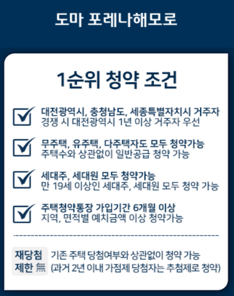 도마 포레나 해모로 1순위 청약조건