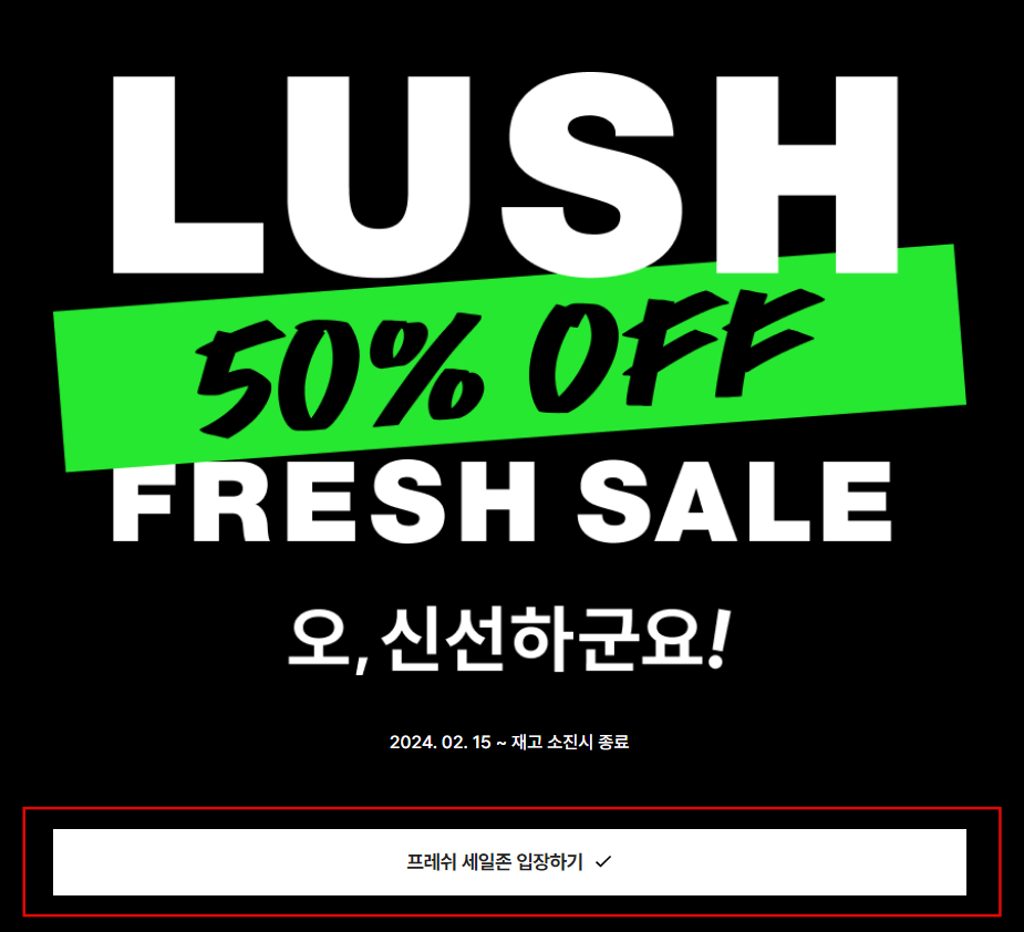또한 아래 버튼을 통해 세일 품목 확인도 가능하니, 빠른 참여만이 저렴하게 러쉬를 구할 수 있는 방법입니다.