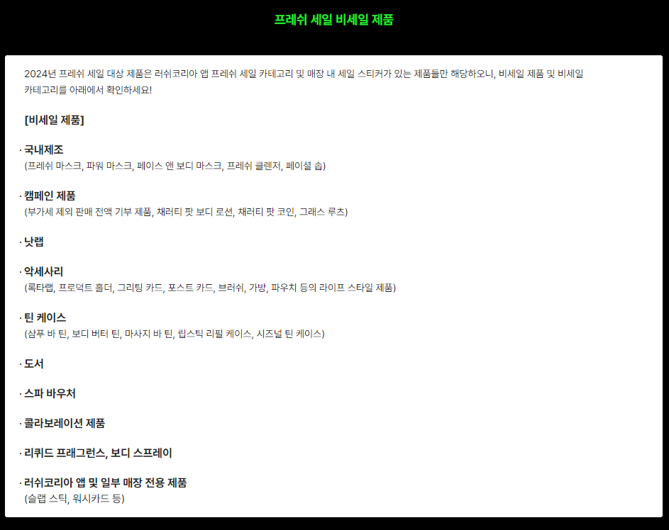 러쉬 프레쉬 세일 품목
