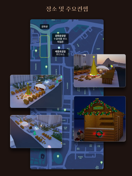 광화문 광장에서만 만날 수 있는 다채로운 마켓 상점으로 수공예품과 시즌소품 부스 그리고 먹거리존 및 체험존 등이 운영되는 공간입니다.