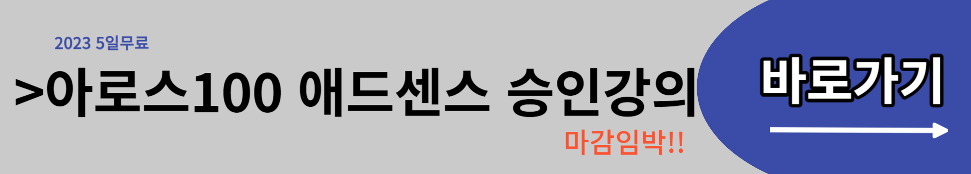 올인원 강의가 부담되는 분들은 아로스 100 사이트에서 제공하는 애드센스 승인 강의를 5일간 무료로 볼 수 있으니, 이 강의만으로도 큰 도움이 될 수 있으니, 여러 차례 애드센스 승인을 못받은 분들은 한번 수강해보시길 추천합니다. 저의 경우에도 강의대로 진행하여 시작한 지 2주만에 승인을 받았습니다.