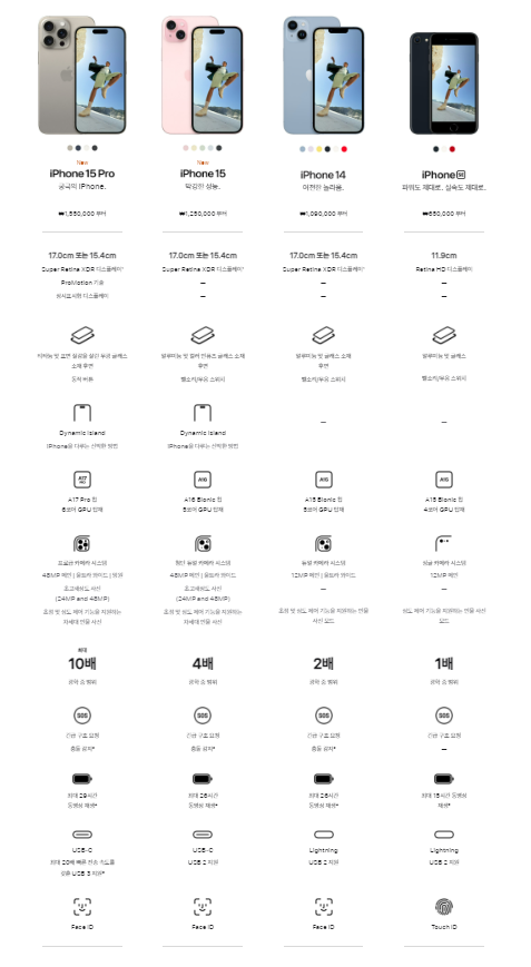 | 아이폰15 | 15.5cmSuper Retina XDR 디스플레이 |