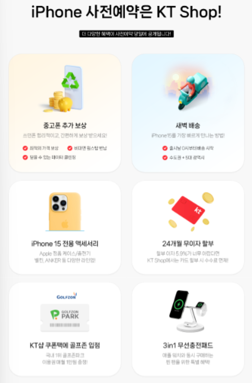 KT의 사전예약 혜택은 아래 사진과 같이 다른 판매처와 크게 다를 바 없지만, 무선충전패드를 제공하는 것이 조금 다르다고 할 수 있습니다.