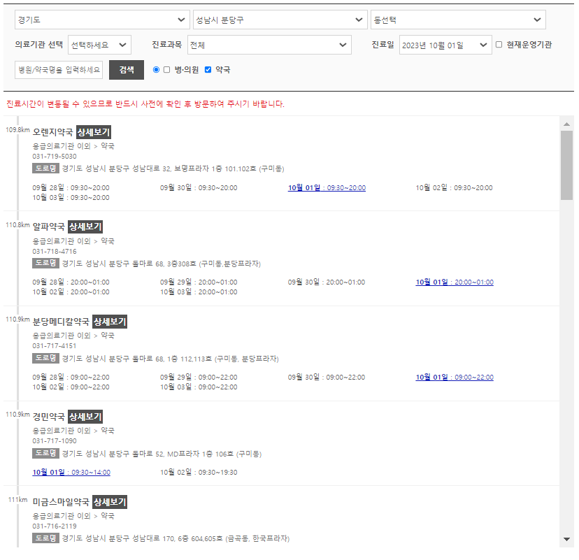 위에서도 언급한 것처럼 연휴 당직 병의원, 약국을 찾으신다면 아래 바로가기 버튼을 누르시길 바랍니다.