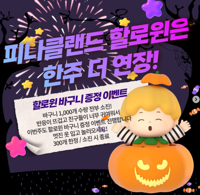 할로윈 이벤트로 할로윈 옷을 입고 오는 선착순 300명에게 할로윈 바구니 증정