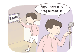 6) 홍수 예상 시 전기차단기를 내리고 가스 밸브를 잠급시다.