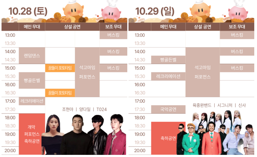 2023 대전 빵 축제 빵집, 행사 일정 및 프로그램, 가수 라인업
