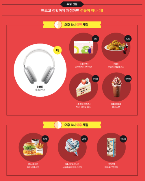 유명 인터넷 강의 사이트에서는 수능 후 가채점 참여 시 각종 혜택을 주고 있습니다. 또한 가채점 참여 시 등급컷 까지 확인할 수 있는 만큼 관련 내용이 궁금하신 분들은 원하는 사이트에서 이벤트 참여 및 확인을 해보시길 추천합니다.